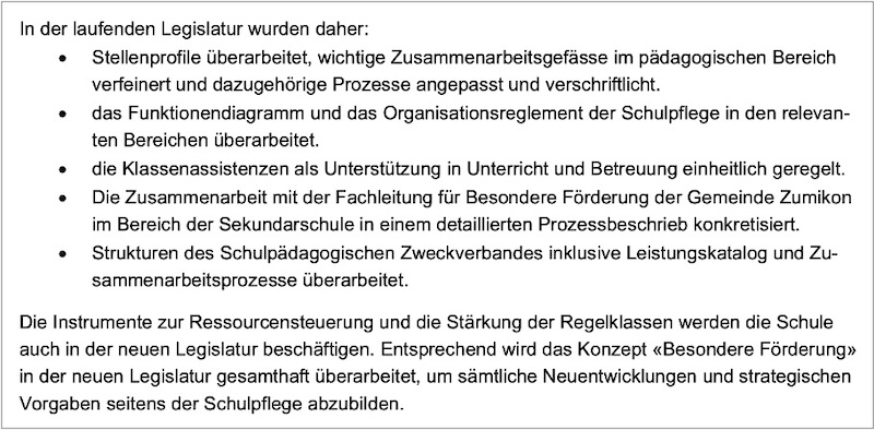 15. April 2026 – Die letzten vier Jahre schlitterte die Schulpflege von einer Krise in die nächste. Jetzt legt sie einen Tätigkeitsbericht vor, der einen grossen Bogen um alle Probleme macht und sich festklammert an Reglementen, Konzepten und Richtlinien.